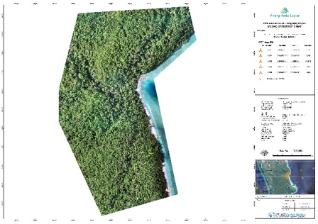 21. Foto Udara untuk pembuatan peta topografi pada areal Resort Pantai pinang, Luas 40 Hektar, Ds. Pinang, Kepulauan Selayar , Prop Sulawesi Selatan, Bekerjasama dengan PT. Pinang Pantai Lestari, Jakarta, Maret 2020